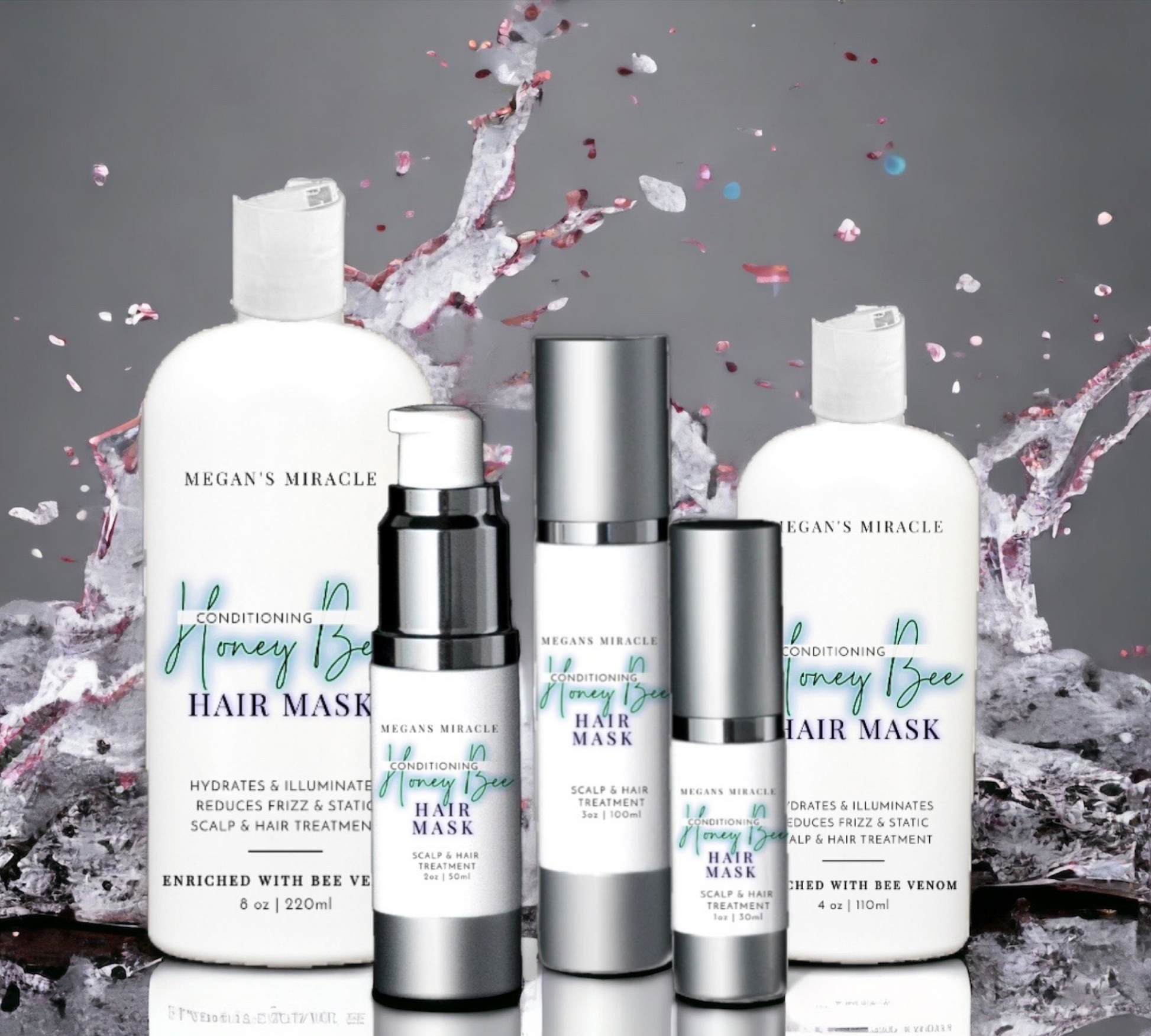 Megan's Miracle Honeybee Hair Mask is custom made with 100% natural active ingredients straight from the beehive- For an Apitherapy combination that works and results that last more than 72 hours after use.