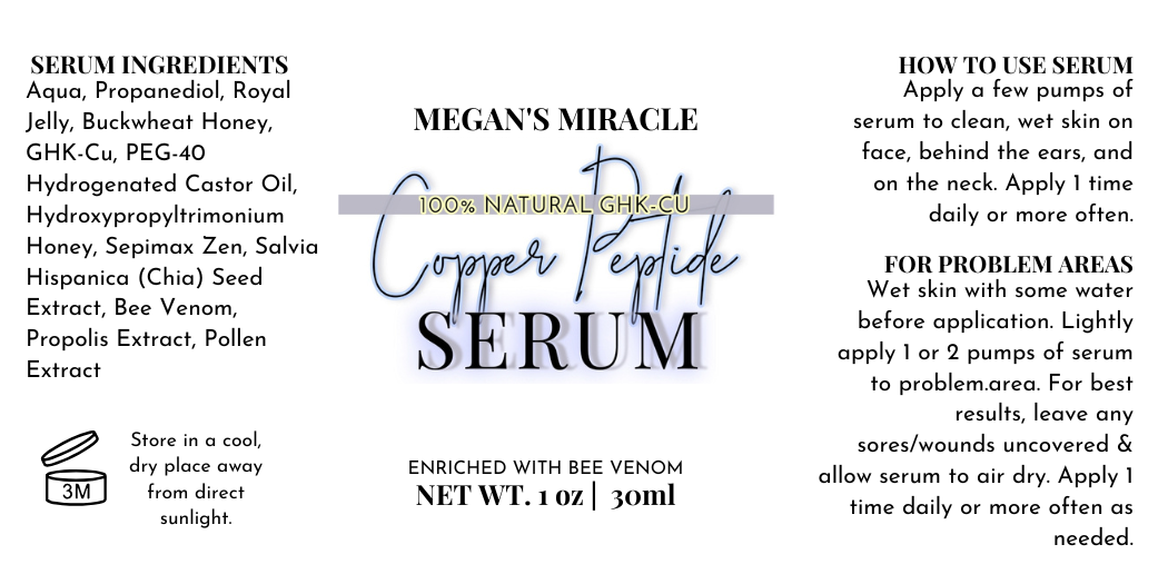 Unleash the power of copper peptides with our Copper Peptide Serum! Enriched with GHK-CU, a natural component of the skin, this serum is perfect for healing wounds, fighting bacteria, and reducing signs of aging. Get hydrated, moisturized skin and feel confident every day!