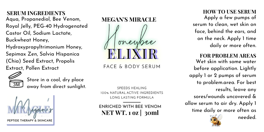 Safe for use on the face and body. Apply before Megan's Miracle Honeybee Venom Yogurt Moisturizer and after using Megan's Miracle bee venom cleanser(s). Use up to multiple times daily for best results.